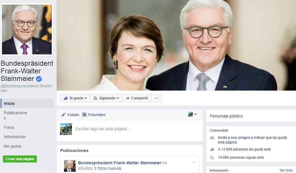 Tras ser elegido como presidente de Alemania, Steinmeier ya anunció su intención de mantenerse activo en las redes sociales, sobre todo, para debatir con los jóvenes. Su nuevo perfil en Facebook estará gestionado por su equipo, informó la Oficina de la Presidencia. Asimismo, se espera que Steinmeier se pronuncie personalmente sobre determinados temas.
