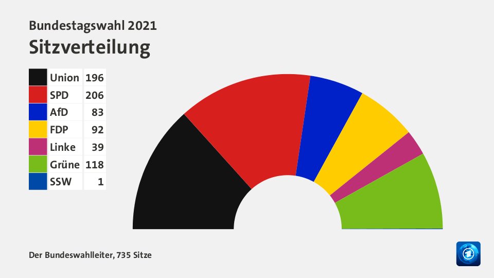 Tras las elecciones generales, comienza la difícil lucha por formar un gobierno. Según los resultados de todos los distritos electorales, el SPD se ha convertido en la fuerza más fuerte y quiere nombrar a Olaf Scholz como el próximo canciller, pero a pesar de su derrota histórica, la Unión también afirma liderar el gobierno. Ambos dependen de una alianza con los Verdes y el FDP. El noviazgo de posibles socios ya ha comenzado.